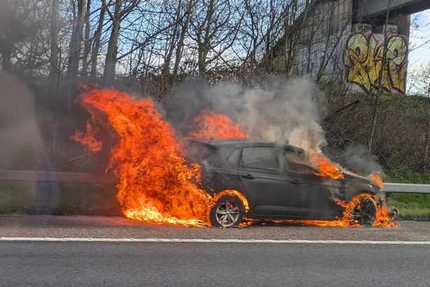 M6 traffic chaos as car bursts into flames and sparks rush hour delays